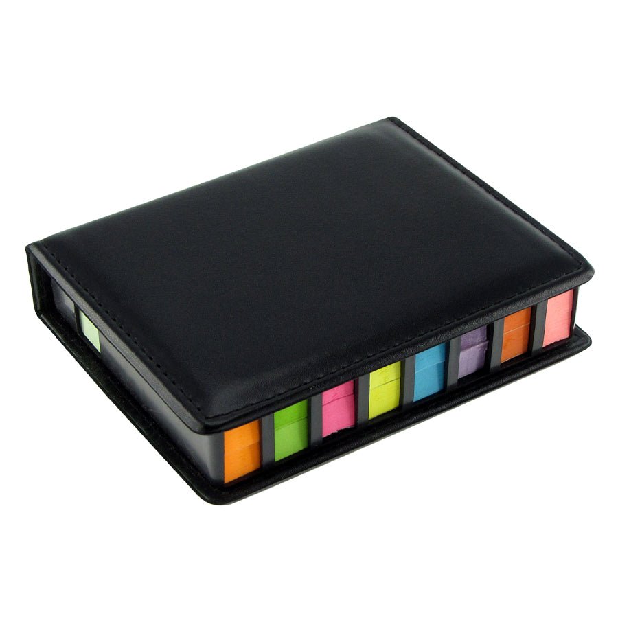 Memo Set de PU negro con notas y banderitas adhesivas. Incluye 200 notas adhesivas rectangulares + 200 notas adhesivas cuadradas + 1.600 banderitas adhesivas de colores. Superficie de PU liso,